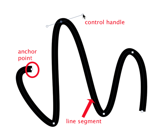 Bézier shapes have line segments, anchor points, and control handles.