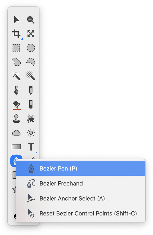 The bézier pen tool is a shape tool used to create custom vector shapes. You can also select it by using keyboard shortcut "P". When the bézier pen tool is selected your cursor will look like the tip of an ink pen.