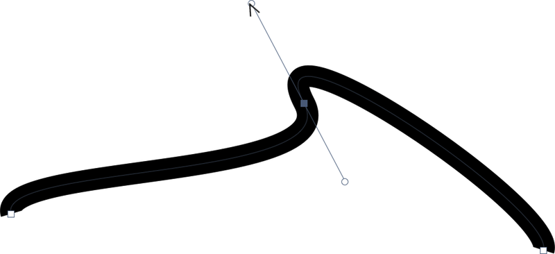 Curved Line Segments: To curve an existing line, you can either use the reset bézier control points tool as described above, or hold down the option key and click on an anchor point. The cursor will change to look like this: