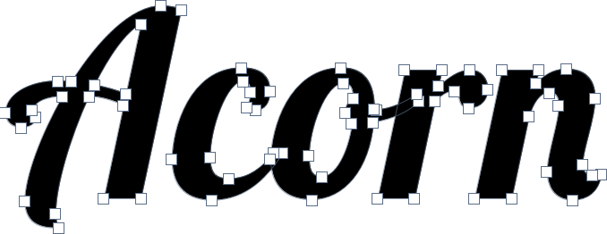 Deleting Anchor Points: To delete anchor points, select an anchor point then hit the delete key. Alternatively, you can select the bézier pen tool and hold down the option and command keys simultaneously and click on the anchor point to remove it. To have Acorn automatically delete random points for you, try Shape ▸ Bézier Stuff ▸ Simplify Path.