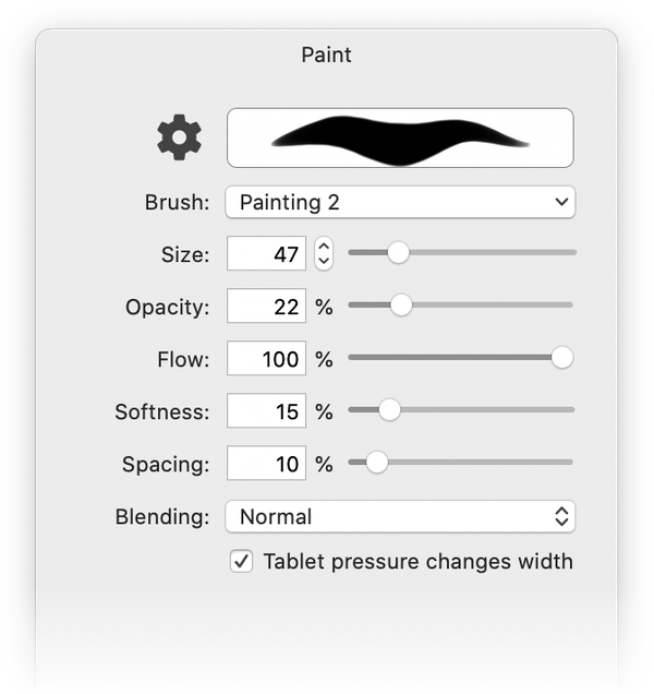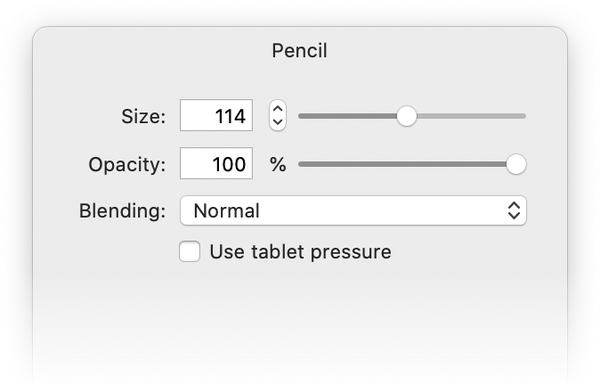 - Use tablet pressure for opacity: When this is turned on Acorn will make your brush strokes more or less opaque, depending on the pressure you use with your tablet stylus.