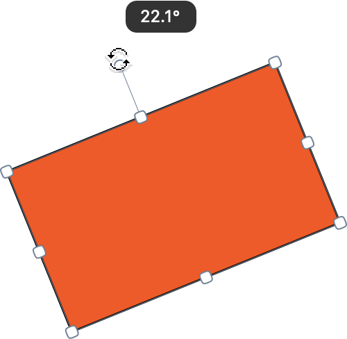 The angle of the shape can be modified by altering the angle value in the shape palette. Another option is to hover over a corner of the selected shape, and a circular arrow will appear. Click and drag once the circular arrow has appeared to achieve your desired rotation. Hold down the shift key when dragging to constrain your rotation to 45 degree increments.