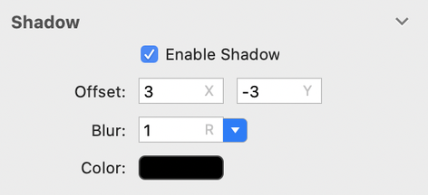 Give your shape a drop shadow and customize the shadow position, color, and blur values. Click on the shadow color well once to select it, then change the color in the colors palette.