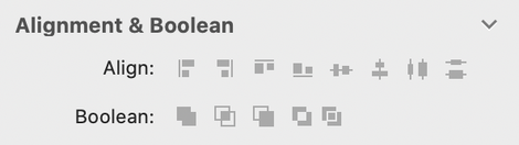 Select two or more shapes and choose from the alignment options to arrange the shapes by their edges or centers. Select two or more shapes to perform Boolean operations including union, intersect, difference, exclude, and divide.