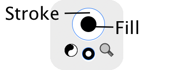 In the tools palette, color can be applied to both the fill and stroke of a shape (the exception is line shapes as the line has no fill). The outer circle is the stroke color and the inner circle is the fill. To change the color of the fill or stroke you can click on a color well in the tools palette to access the colors palette. Alternatively, you can select your shape and bring up the color palette by going to Window ▸ Colors, or typing the keyboard shortcut ⇧⌘C.