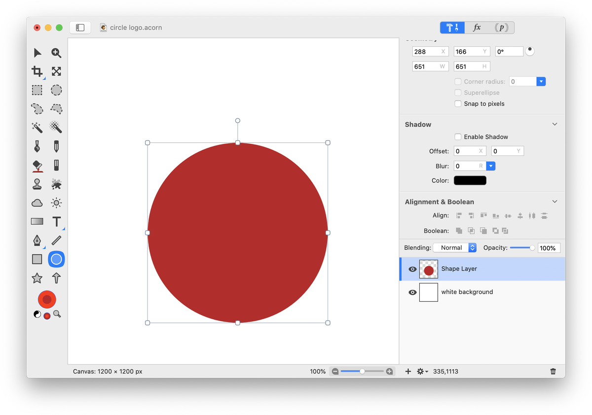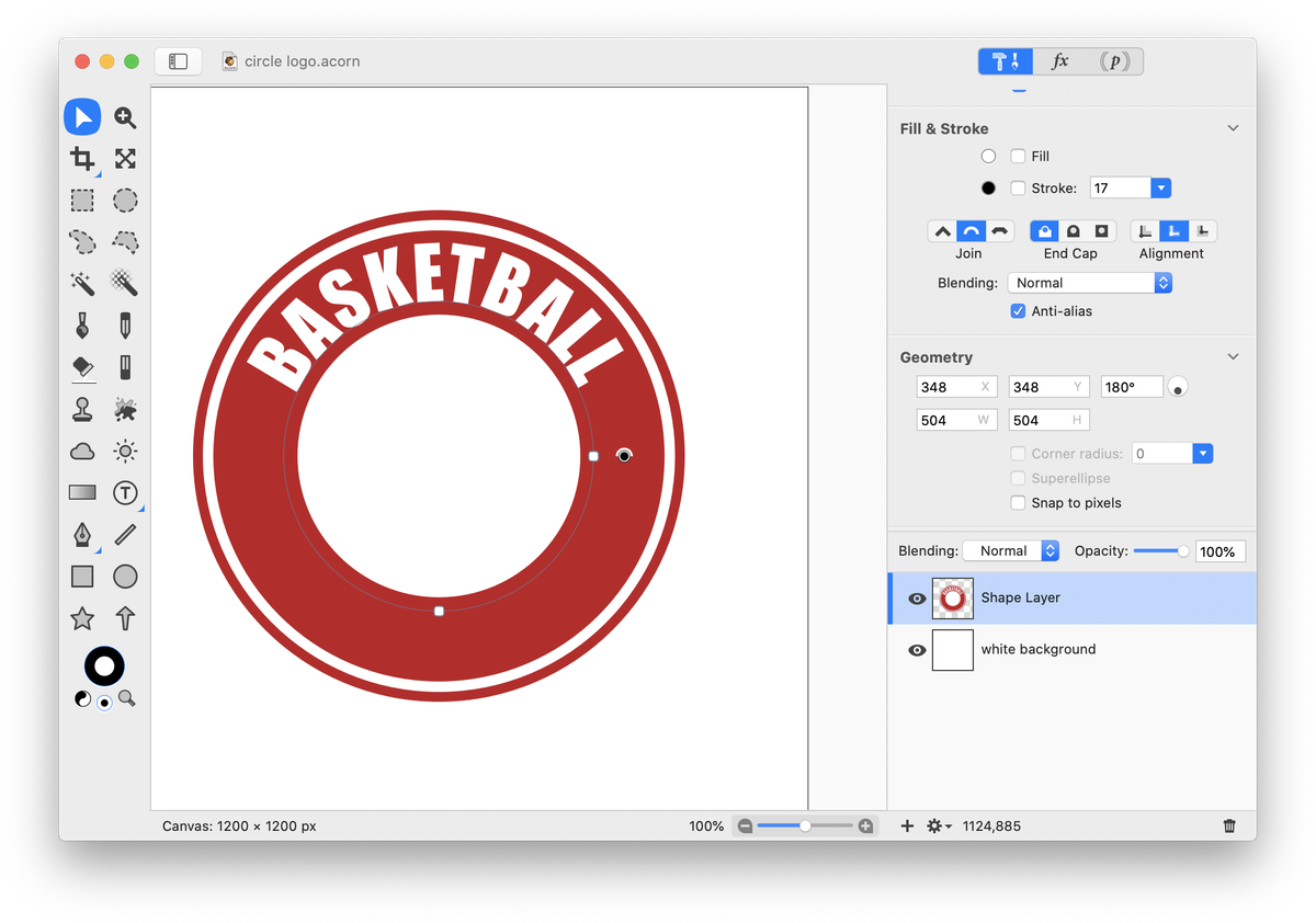 Creating a logo using text on a circle is quick and simple in Acorn. To start with, create a new image File ⸠New. The dimensions of 1200 x 1200 pixels with a white background is used here. Navigate to View ⸠Guides and Grids and make sure âSnap to Canvasâ is checked. Also, go to Acorn ⸠Settings ⸠Advanced and make sure âWhen drawing shapes: Keep selected for editingâ is checked.